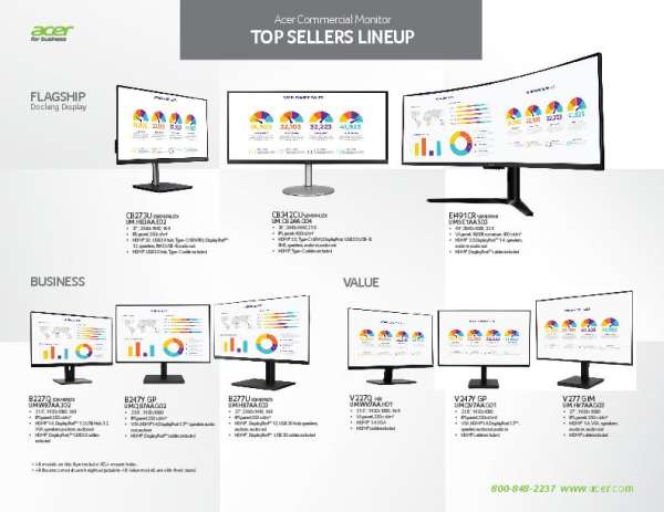 Acer Commercial Monitor Top Sellers Lineup