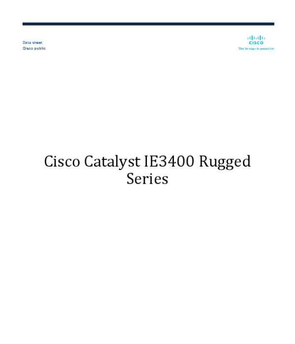 This product brief describes the features, specifications, and dimensions of the Cisco Catalyst IE3400 Rugged Series—ideal for manufacturing, energy, transportation, mining, smart cities, and oil and gas operations.