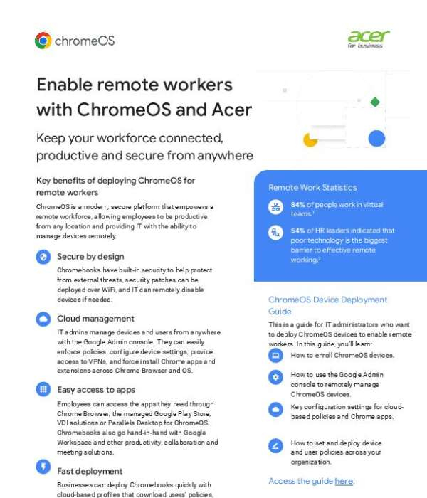 Read the infographic to discover how simple it is to transform your remote work infrastructure with Acer’s ChromeOS solutions. Contact to start building your transformative workspace.
