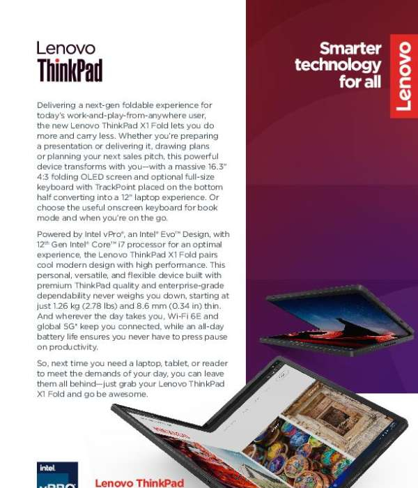This product brief outlines the major benefits, features, and technical specifications of the Lenovo ThinkPad X1 Fold 16 Gen 1.
