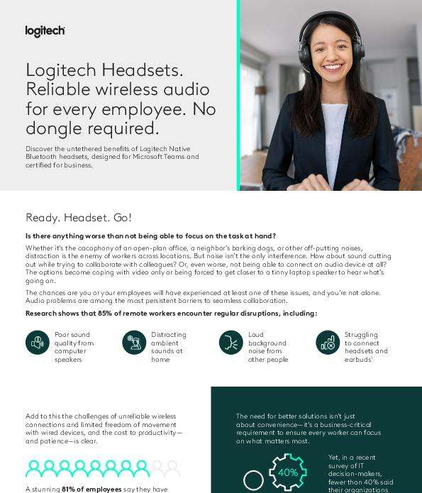View: Logitech Headsets. Reliable wireless audio for every employee. No dongle required.