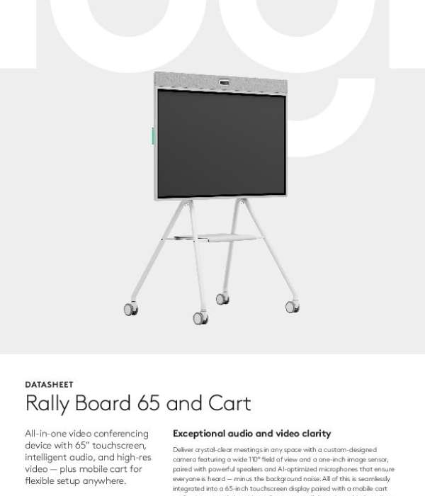 Effortless collaboration starts with technology that adapts. The “Rally Board 65 and Cart Datasheet” details the advanced capabilities that make this all-in-one solution ideal for hybrid work. Download it to see how Rally Board 65 delivers exceptional clarity, flexibility, and sustainability for any meeting space. Connect with White Horse Distribution, LLC for expert support.