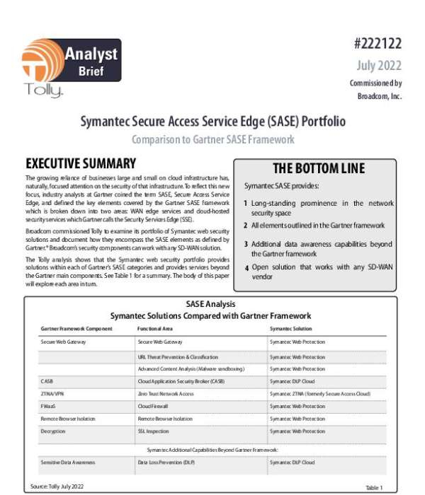 This analyst report by the Tolly Group, an independent testing firm, reviews Symantec’s Secure Access Service Edge and explains how its capabilities compare with Gartner’s definition of SASE. Download a complimentary copy of the report for an expert analysis of the key capabilities of the Symantec portfolio. To learn more about SASE and Symantec, Contact White Horse Distribution, LLC to assess how the Symantec Access Service Edge can provide specific benefits to your organization.