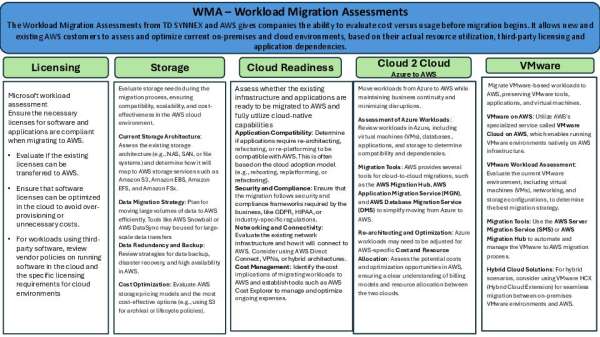 Modern IT environments are complex. Before migrating, organizations must clearly understand workloads to ensure a seamless transition and maximize ROI. Workload Migration Assessments from TD SYNNEX enable customers to evaluate cost versus usage before migrating. View the infographic to see how an assessment can help reduce costs, minimize disruption, and ensure licensing compliance. Contact us to learn how we can customize a Workload Migration Assessment based on your organization’s unique goals and challenges.